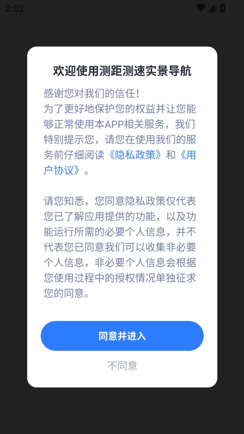 1、测距测速实景导航,同意其软件协议,继续使用。