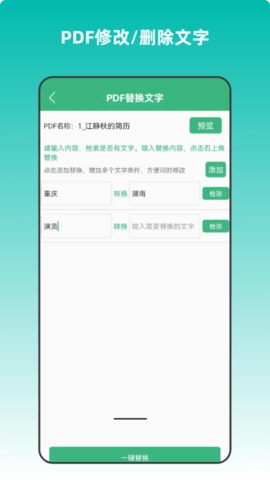 在PDF图片提取功能里,用户能依据自身需求挑选任意数量的页面来提取图片。图片提取完成后,会自动保存至相册,便于用户查看与使用。至于PDF文字替换功能,用户可输入待替换的文字并执行查询操作。当查询到目标文字后,用户就能输入新的替换文字,完成替换步骤。此功能仅兼容Arial.ttf、DroidSansFallback.ttf和宋体这三种字体。