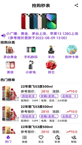 抢购秒表是一款相当实用的商品推荐服务软件。在电商平台遍地开花的当下,我们总是会陷入“该在哪个平台下单”的纠结中,不少优惠活动也常常与我们擦肩而过,实在令人惋惜;此外,还有一些热门好物,由于抢购竞争太过激烈,我们往往很难成功抢到。而有了抢购秒表,这些令人头疼的问题就都能轻松解决了。