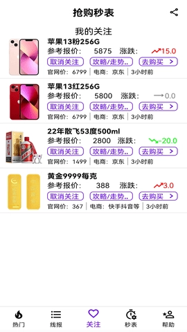抢购秒表借助实时更新的参考价格与省钱线报,助力我们更清晰地掌握商品的价格动态和优惠详情,从而能更精准地判断购买时机以及选择最划算的电商平台,避免盲目下单和错过优惠,让购物变得更省心省力。这款软件永久免费,使用起来更让人安心。它涵盖了国内主流电商的促销优惠信息、购买攻略及参考价格等内容,并且每日实时更新参考价格,保证我们获取最新的价格资讯,以便做出更明智的购买抉择。