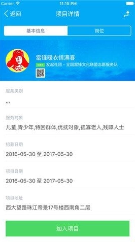 2、点击您感兴趣的项目后,会进入该公益活动的详情页面。在这里您可以了解活动的完整信息,包括内容、时间、地点等。如果您认为合适,可以直接点击“我要报名”或“加入项目”按钮来申请参加。