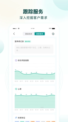 为了更优质地服务健康管理者,行动营养师具备客户动态数据的实时追踪能力。借助AI智能脉诊仪及相关健康管理测评工具,行动营养师可及时把握客户的健康状态,并发出风险预警。此外,行动营养师还能定向推送健康资讯,助力管理者精准捕捉客户需求,从而进一步增强服务成效。