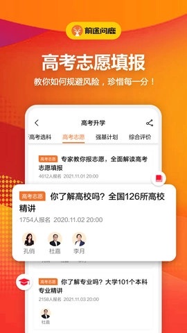前途问鹿为学生提供全天候的课程直播服务,还有超时长的专项知识讲解,以及老师超耐心的答疑解惑。学生能借助实时互动,和老师一起解决高考升学路上遇到的各种疑难问题。这种通过互动来解决问题的模式,能让学生在填报志愿时更有底气、得心应手。而且,前途问鹿的服务不只是聚焦在高考志愿填报这一块,还涵盖了学生生涯发展的全程解决方案。