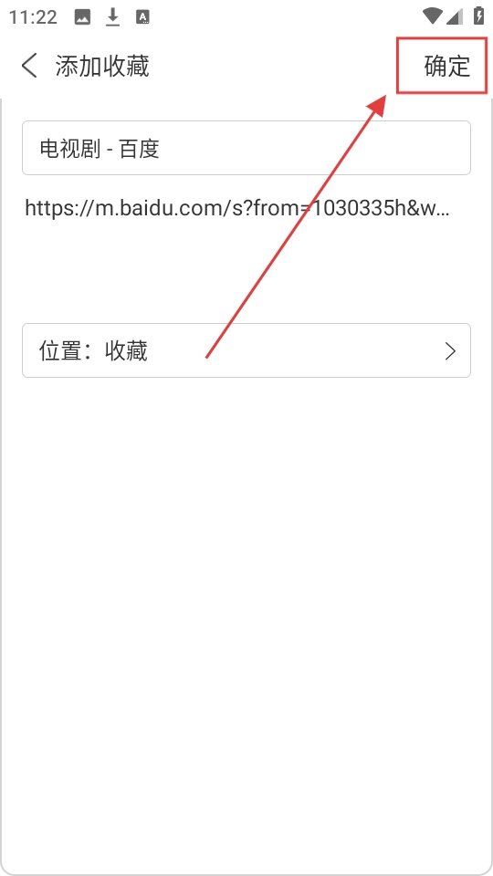 4、进入添加收藏的页面,确认好相关信息后,点击【确定】按钮,即可成功收藏该网页,这样下次查看就会更方便了。