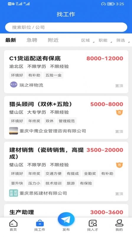 2、璧山人才网提供的所有工作搜索功能均为免费,旨在简化您的求职流程,为您带来与众不同的找工作体验。