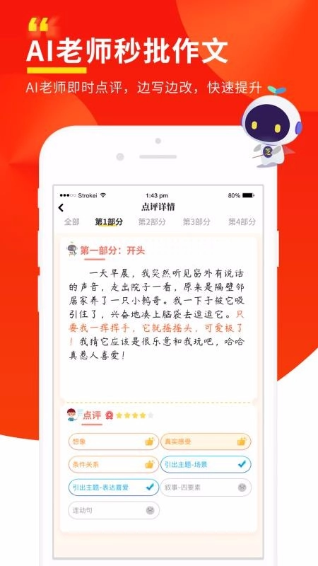 1、芝麻作文评论的构成非常清晰,可以查看非常详细的评论让你学习。