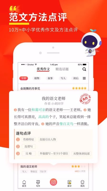 2、优秀作文:可录入大量优质的作文评论,你能够依据分类来查看评论内容。