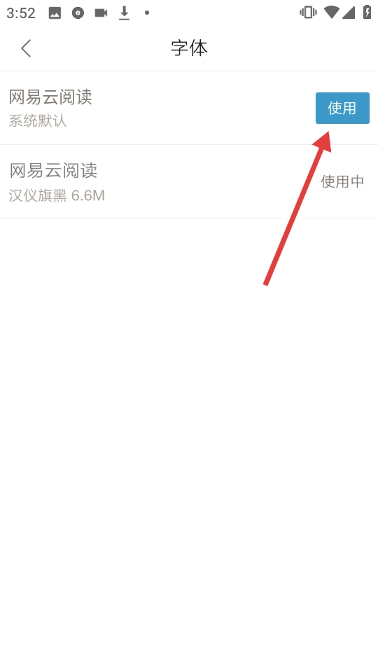 4、在字体页面,点击“网易云阅读系统默认”右侧的【使用】按钮,切换字体。