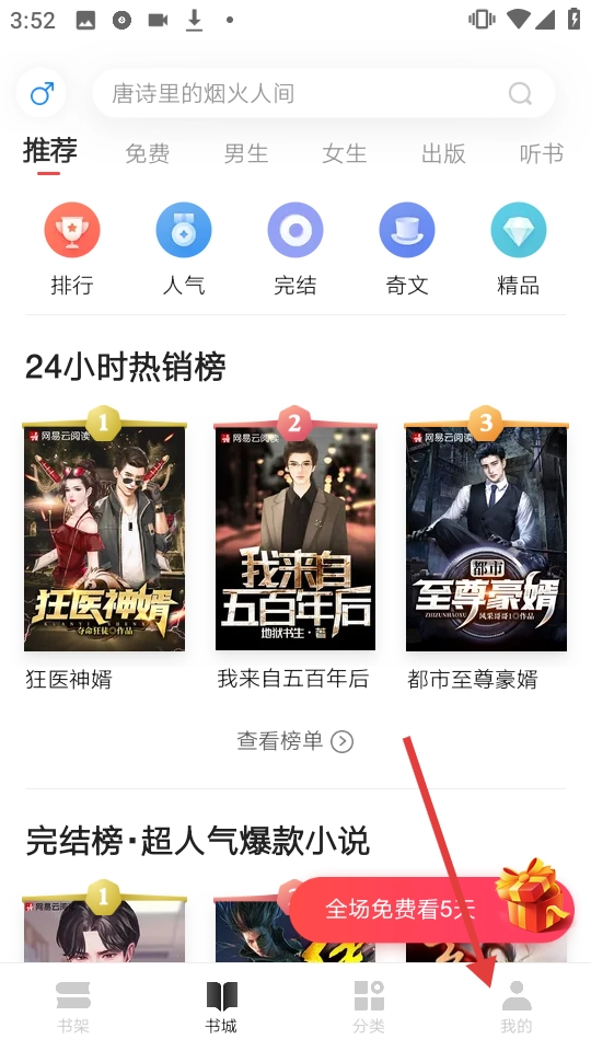 1、在阅读书城界面,点击右下角【我的】进入个人页面。