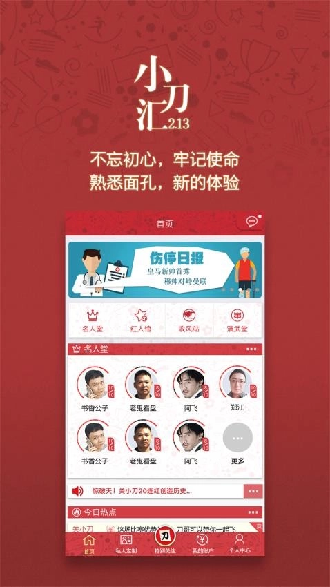 小刀汇是一款专注于体育新闻资讯的软件,能实时推送各类体育赛事信息,方便用户随时浏览赛事资讯、掌握最新动态。它还全面整合体育界名人资源,打造可视化名人堂,让用户轻松了解体育领域的知名人物。用户可随时在线查阅各赛事的赛程与赛果,一手掌握赛事情况;也能对感兴趣的赛事设置特别关注,平台会优先推送相关消息。这是专为体育爱好者打造的赛事资讯福利软件,有需要的用户不妨来小刀汇体验一番!