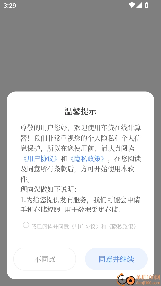 1.首先打开软件阅读“温馨提示”后,点击“同意并继续”按钮进入