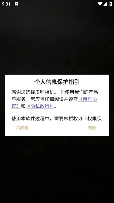 1、启动软件后,请仔细阅读隐私政策和用户协议,点击“同意”按钮就能进入主界面,开始你的拍摄体验。