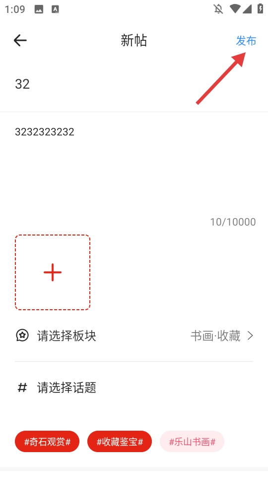 4、内容填写完毕后,点击右上角的【发布】按钮,即可完成新帖的发布操作。