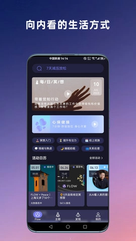 我们的应用不只是一款冥想工具,更是一个生活方式平台。我们专注于助力更多人缓解焦虑、改善睡眠、提升能量,同时更好地认知与探索自我。借助FLOW冥想,你能在忙碌的生活里寻得宁静与平衡,重新找回内心的力量。FLOW冥想应用拥有丰富多元的冥想课程与音乐,以契合不同人群的需求。不管你是冥想新手还是有经验的练习者,我们都有适配你的课程。我们的冥想课程覆盖呼吸冥想、身体冥想、情绪冥想等多个领域,你可依据自身需求挑选合适的课程,每天只需花几分钟进行冥想练习,就能体会到身心的改变。