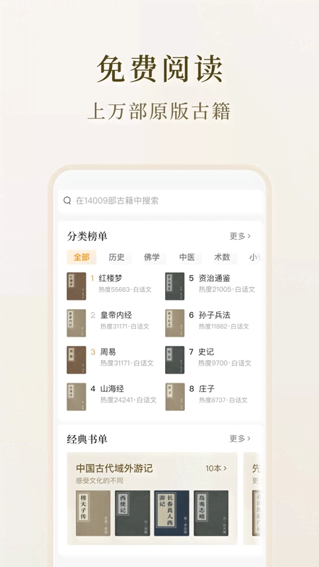 应用所收录的古籍均经过严格的筛选和校对,确保内容的准确性和权威性,为使用者提供可信赖的知识来源。