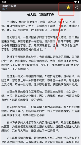 3、点击想要取消收藏的篇幅,如《长大后,我就成了你》,点击图示“黄星”位置