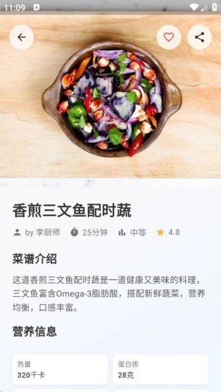 3、呈现菜谱所需的食材筹备、烹饪流程、制作时长、难易程度、评分等详尽内容,帮助用户更好地完成烹饪。