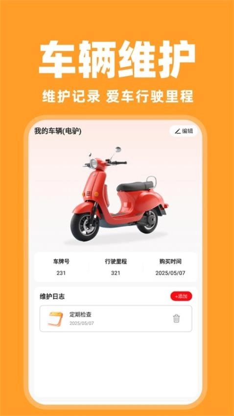 车辆的维护日志可随时记录,能添加详细的维护信息,还能随时查看车辆行驶里程,让维护工作更轻松便捷。