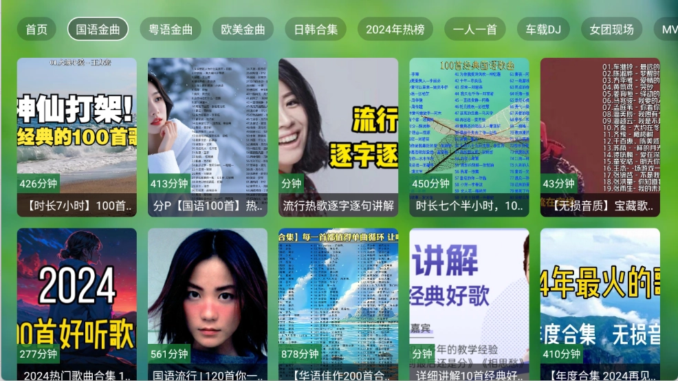 2、进入首页后,顶部栏设有丰富的音乐分类,涵盖国语金曲、欧美金曲、日韩音乐等类别。