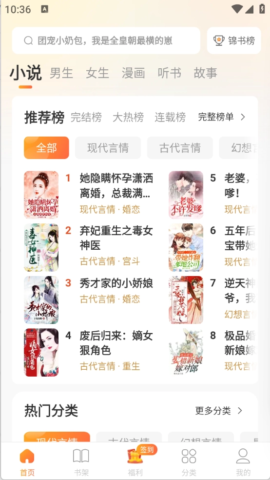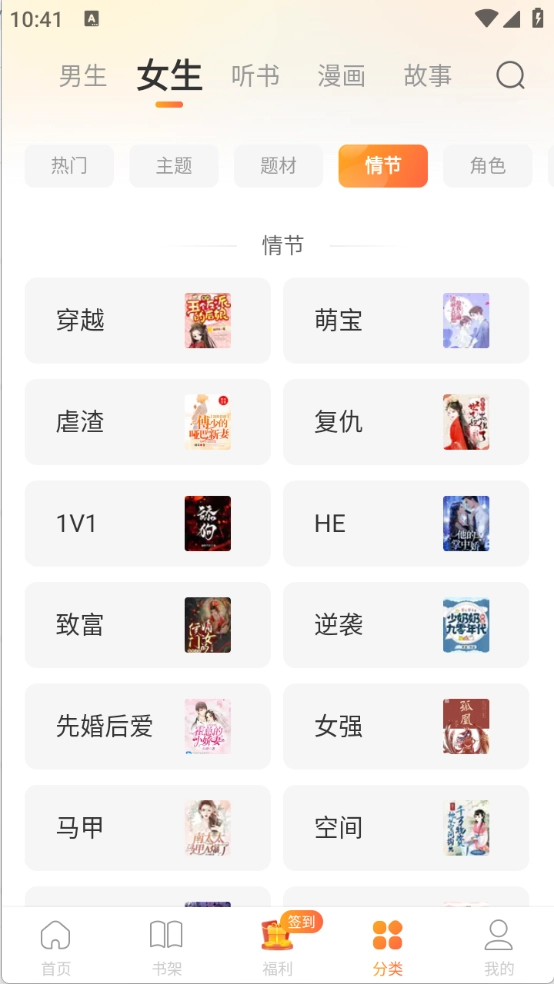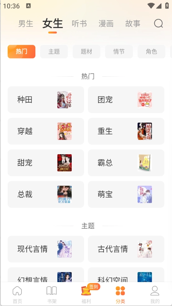 4、分类页面把小说和漫画划分得十分细致,各类题材类型都很齐全。