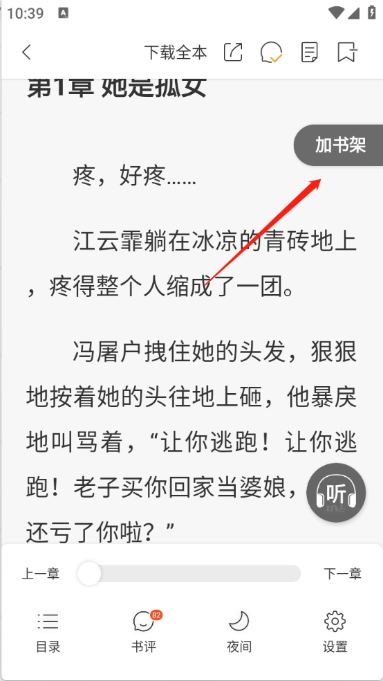 1、打开你喜欢的小说或漫画,进入阅读页面后,点击“加入书架”按钮。