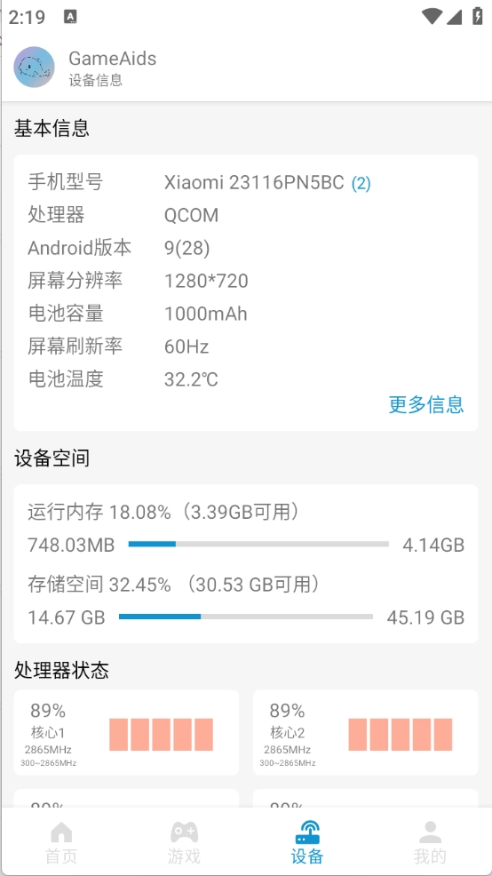 2、游戏运行期间实时监测设备温度、CPU/GPU负载等关键参数,确保游戏能够稳定运行。