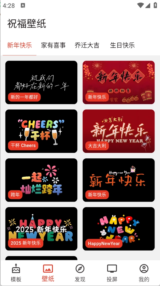 4、此外还有大量祝福壁纸可供选用,适用于新年祝福、生日祝福等各类场景。