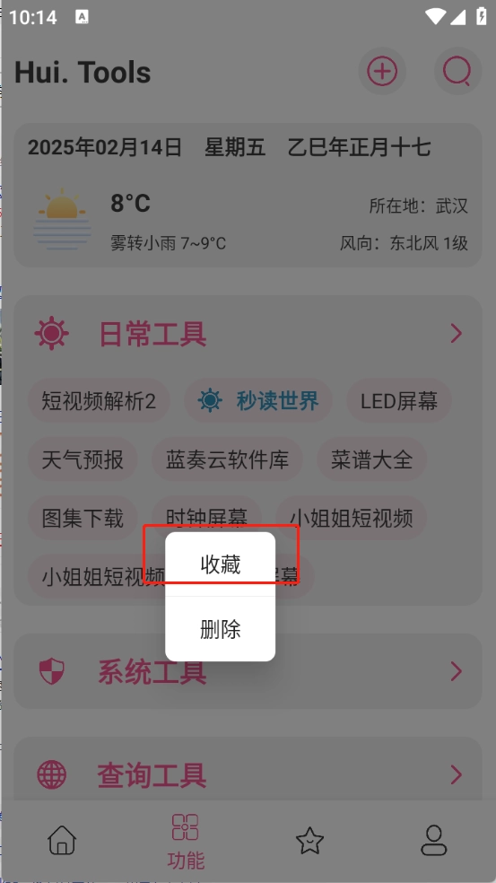 1、用户长按想要收藏的工具,