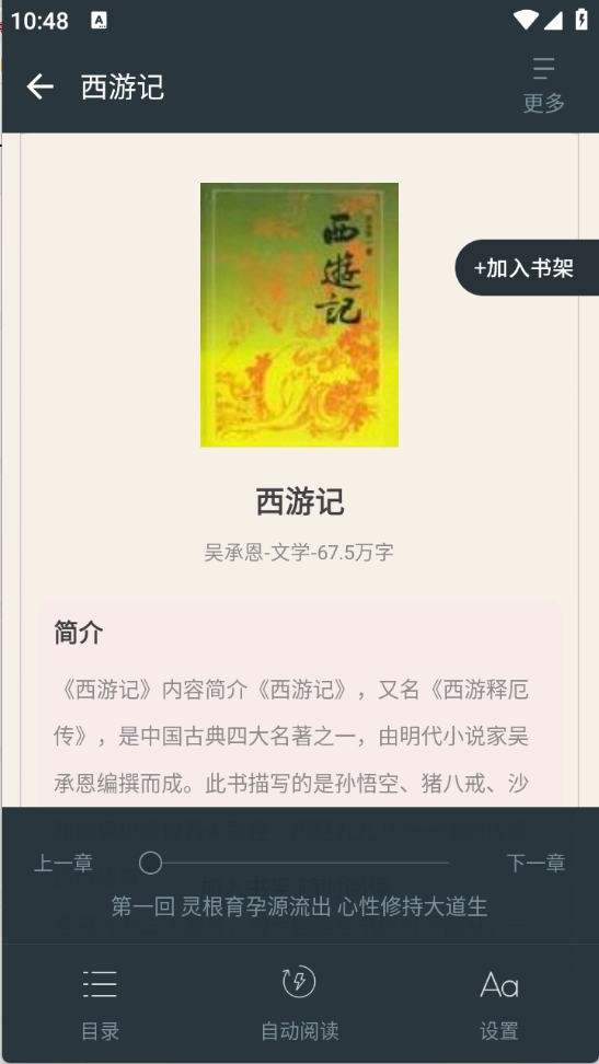 1、打开你喜欢的小说资源进入详情页后,点击左下方的“加入书架”按钮。