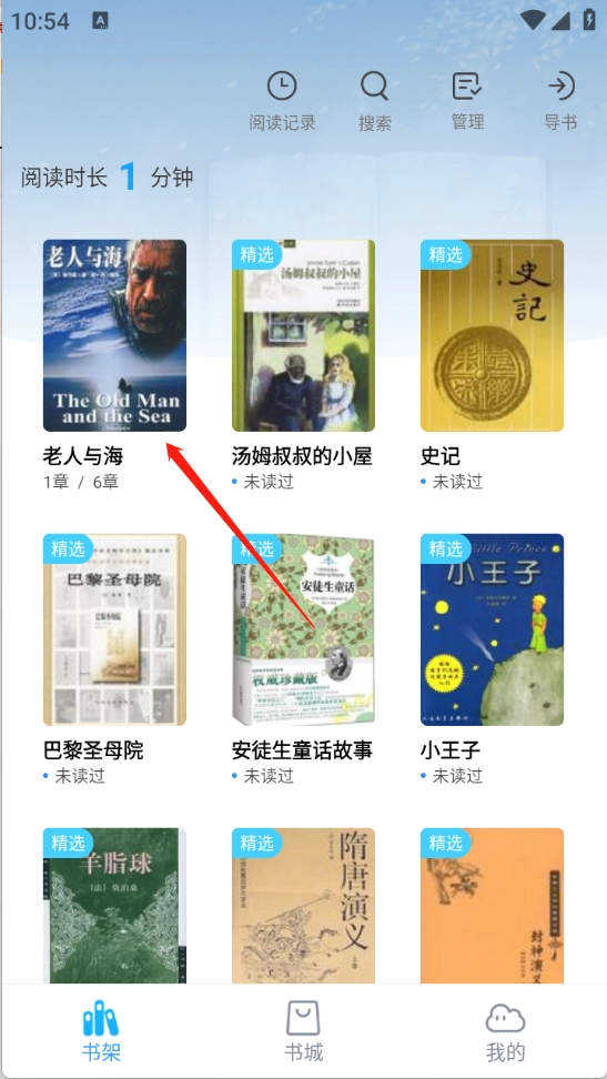 3、回到首页,在“书架”页面可以看到加入的内容。