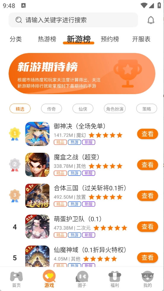 3、提供实时更新的热门游戏榜单,玩家能够迅速了解当下流行的游戏,紧密跟上游戏潮流。