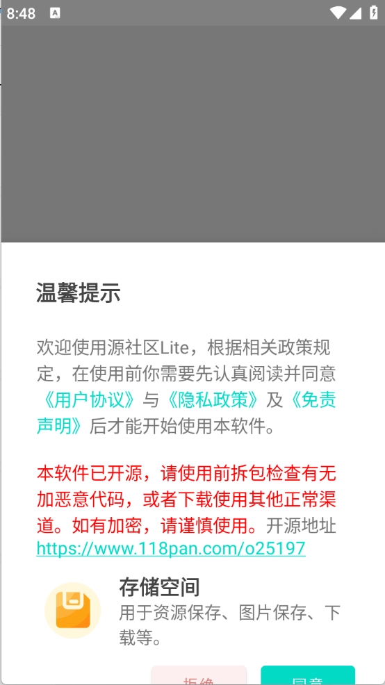1、首先在本站源社区Lite,同意隐私政策和用户协议。