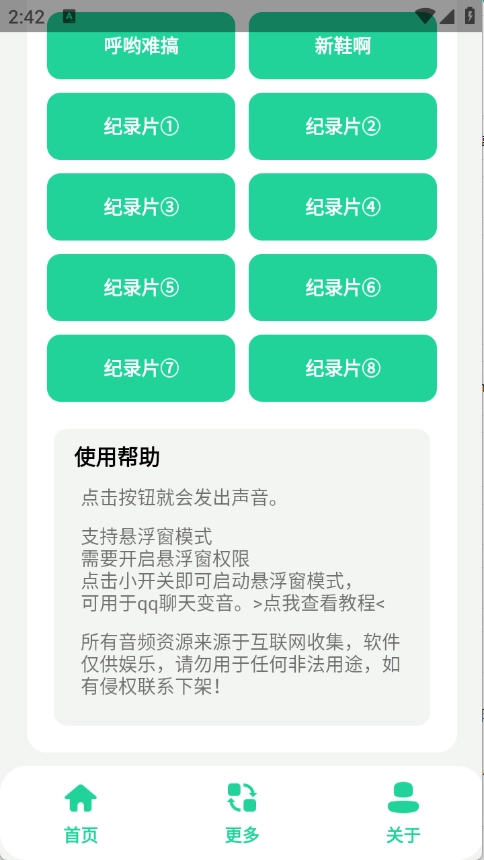 1、点击按钮就会发出声音。支持悬浮窗模式。