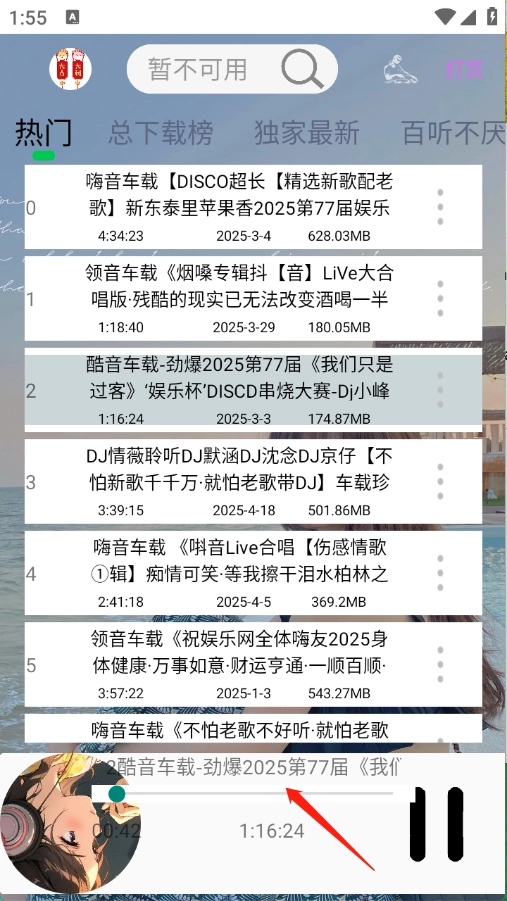 3、用户直接点开想听的音乐资源,就可以播放了。