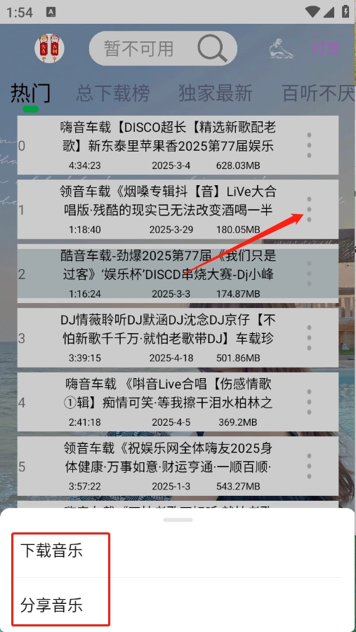 4、另外点击歌曲哟测的三个点可以以及分享歌曲。
