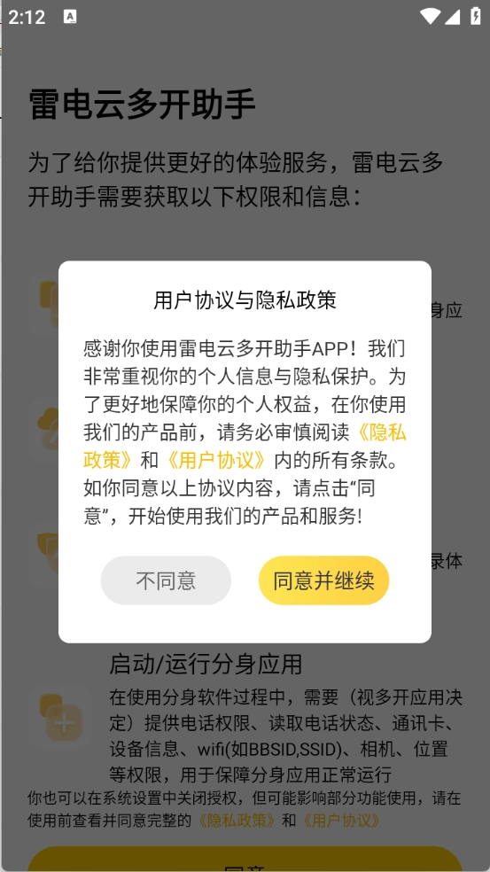 1、首先在本站找到雷电云多开助手,查看并同意其中的隐私政策与用户协议。