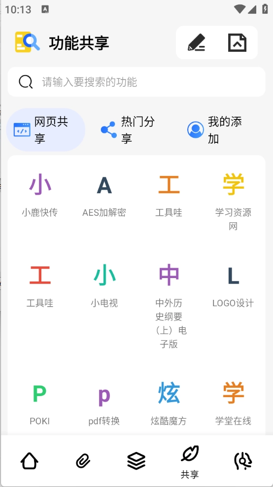 6、共享页面可以将功能快速共享和分享。