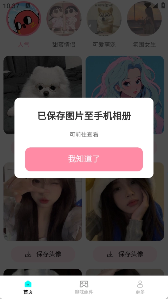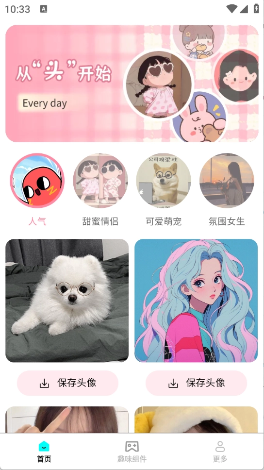 首页页面汇集了多种壁纸类型,涵盖可爱萌宠、氛围女生、甜蜜情侣等。