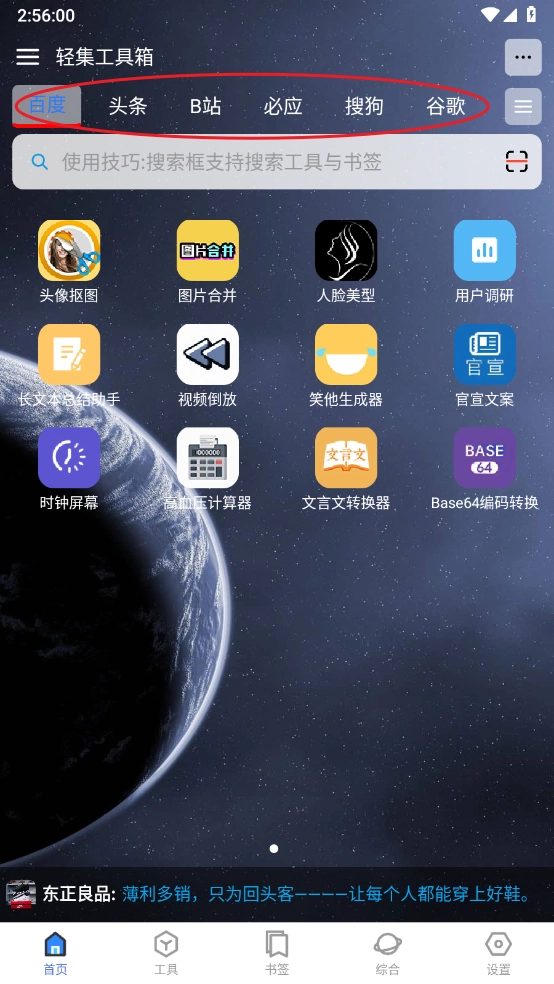 2、首页如何快速搜索工具?