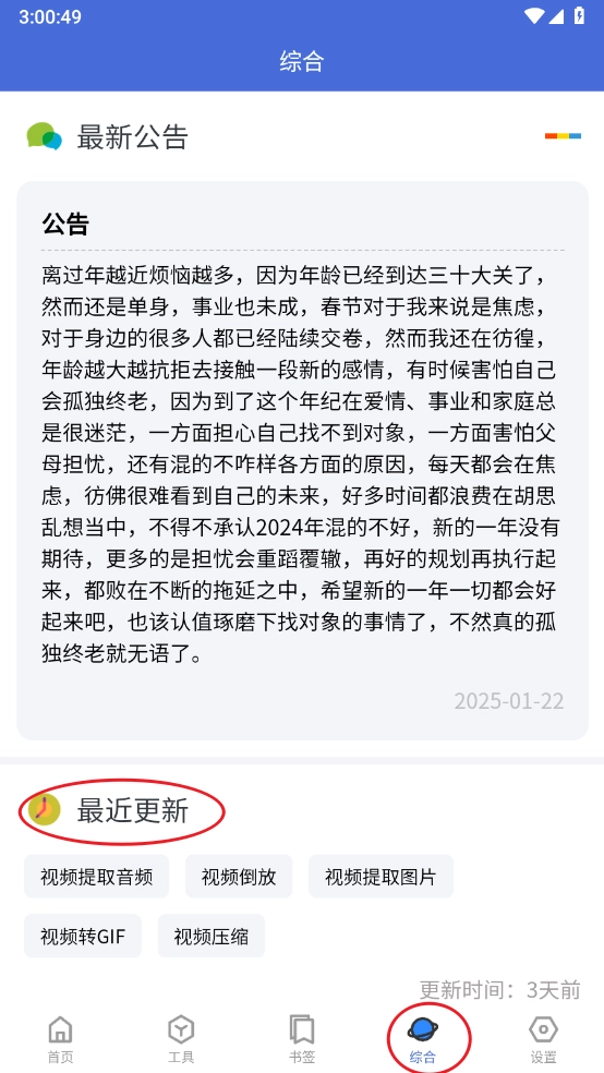 6、最后在"综合"板块可以查看最近更新的功能。