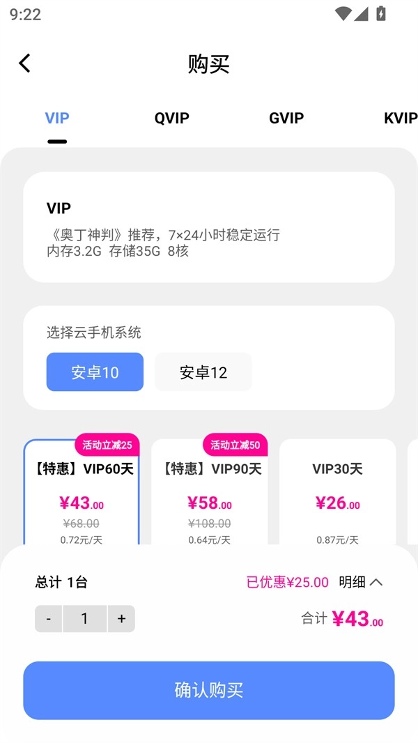 3、接下来你可以选择VIP、QVIP、GVIP、KVIP等多种不同的服务进行购买,以此开启体验。