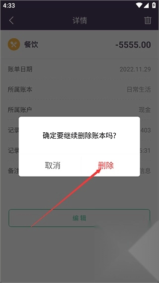 2、点击查看账单详情,点击页面右上角的删除图标;