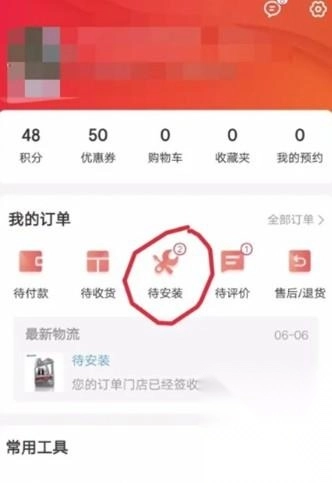 2. 预约的时候打开软件后选择我的订单……待安装,如下图。