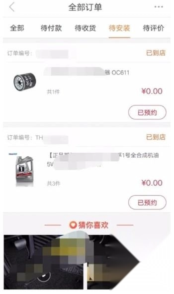 购买的保养套餐相关物品会先配送到门店,届时会有如下短信提醒,收到提醒后就可以在软件里进行预约了!