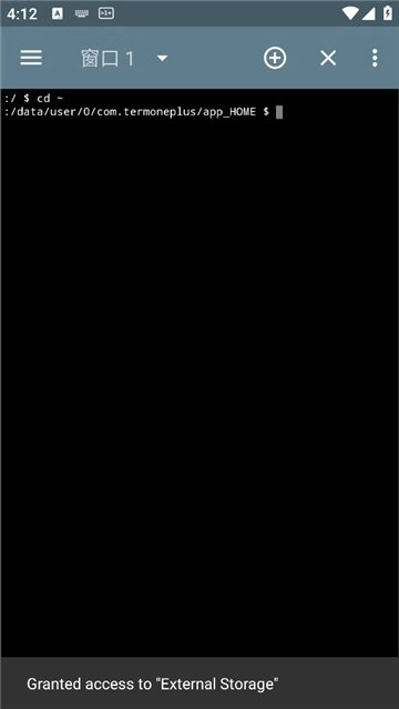 打开终端模拟器后的界面,能让你便捷地输入各类命令。界面左上侧支持窗口切换操作,点击右上角的加号可新建窗口,叉号用于关闭当前窗口,三个点的图标则对应更多功能选项。