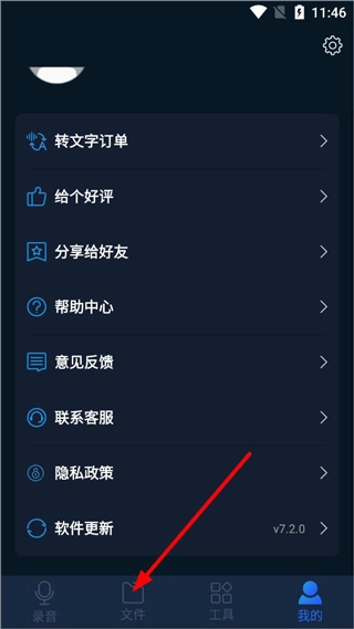 3、进入文件界面后,点击右上角的图标,即可选择音频导入、云传输等功能选项。