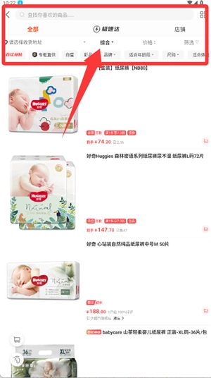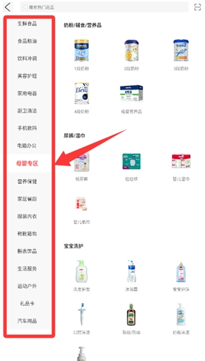 2、进入商品分类页面,按需选择母婴等专区浏览商品。