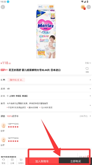 4、查看商品详情后,通过加入购物车或立即购买完成订单。
