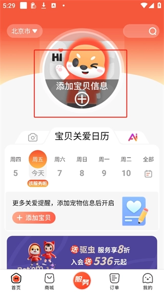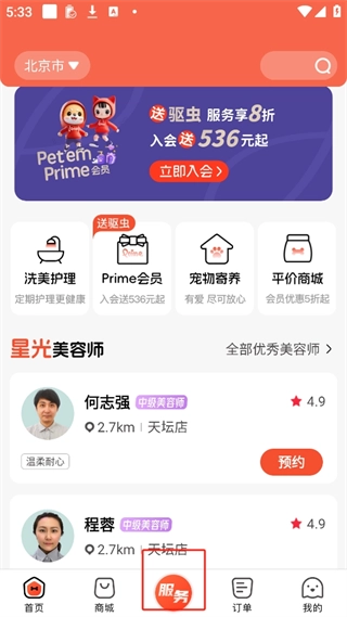 4、点击服务这里面可以预约上门给宠物洗澡等等