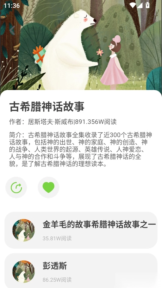 6. 最后进入绘本故事的简介页面,点击“❤”按钮即可完成收藏。